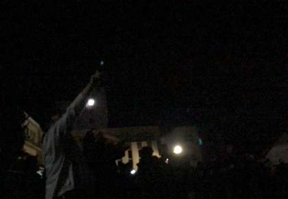 星空観察をしている様子です。夜空は薄雲に覆われていますが、雲の上は満天の星です。