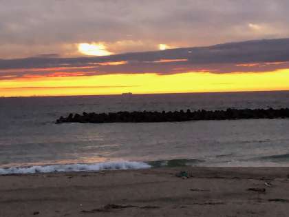 日の出前。美しい朝焼けです。子どもたちはまだ夢の中。潮騒を聴きながらぐっすり眠れたでしょうか?