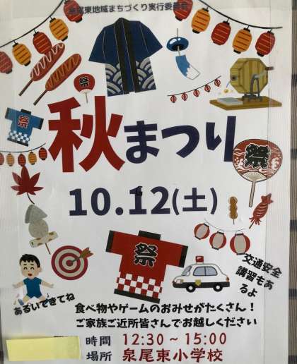 明日は本校にて、泉尾東地域主催の秋まつり。以前にもらった金券を忘れず持ってきてくださいね。