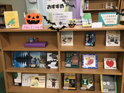 ハロウィンにちなんだ、不思議の本や、さわって楽しめる本なども展示されています。