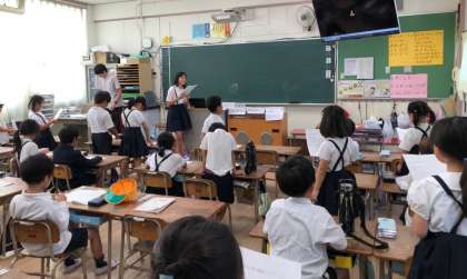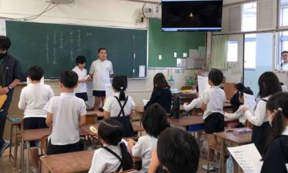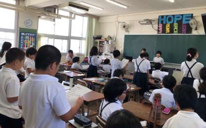 応援団の児童が、各教室へ応援歌の伝達に行きました。