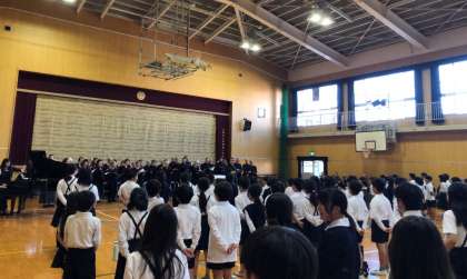 合唱団のみなさんと子どもたちとで、「君をのせて」を一緒に歌いました。
