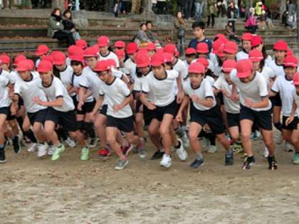これまで6回参加してきた持久走大会の総決算として、千島グラウンドの「泉東持久走特設コース」を力強く走り抜けた6年生でした。