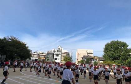 今年の運動会のめあては、「最後まで全力で!くいのない運動会」です。力いっぱい頑張りましょう!!