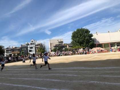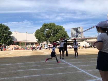 小学校で初めての運動会。力いっぱい、かっこよく走りました。
