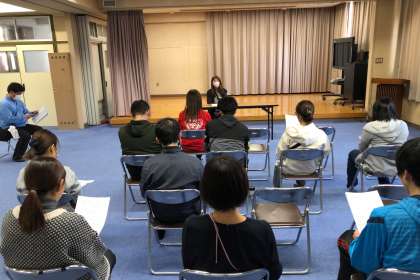 区内の小中学校の教職員が集まり、本校の仲間づくりの実践を報告します。今日は発表のリハーサルを行いました。