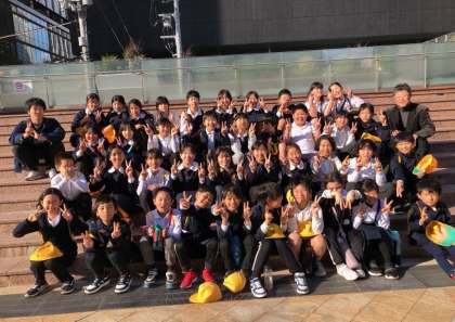 楽しく学んだ時間はあっという間に過ぎ、帰路につきました。昨日から仲間入りした2人のお友だちも含め、4年生全員で写真を撮りました。いい笑顔です。