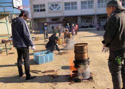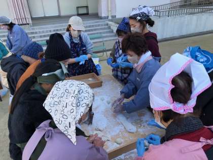 子どもたちはきなこもちを持ち帰り、寒いなか頑張った大人向けには温かい雑煮が振る舞われました。