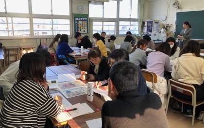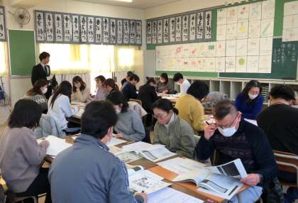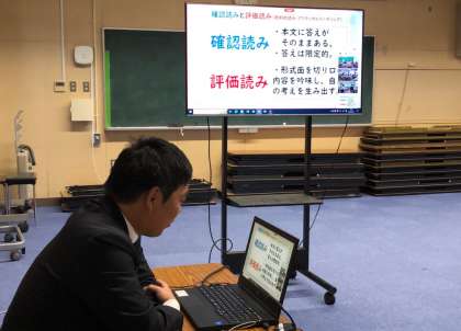 研究発表や指導主事先生の指導講評などは、本部多目的室からリモートで、低・中・高学年に分かれての分科会は教室に分かれて。