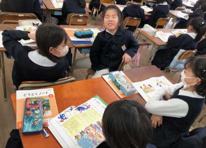 2年生で道徳の研究授業を行いました。大正区内の各小学校からも参加していただきました。