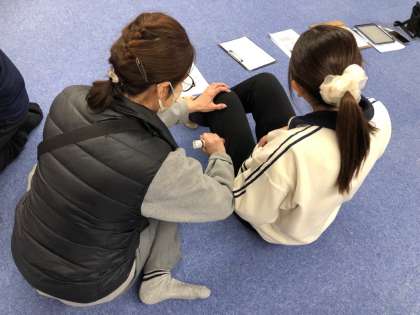 始業式を明日に控え、アナフィラキシーショックの場合のエピペンをはじめとした対応、低血糖に陥った場合のバクスミーを用いた救急処置について研修を行いました。