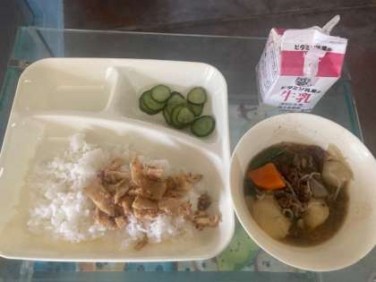 本日の献立 肉じゃが、きゅうりの酢の物、ごまかかいため、ごはん、牛乳