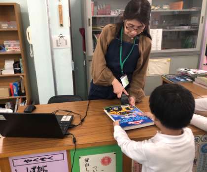 1年生も、バーコードをピッ!としてもらって本を借りたり返したりすることにすっかり慣れています。