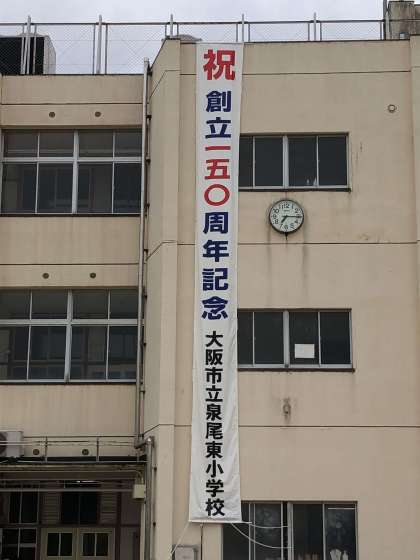 創立150周年記念の懸垂幕が完成し、校舎の屋上から吊り下げました。大きな文字が遠くからもよく見え、気分が盛り上がります。