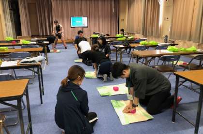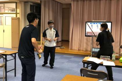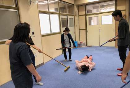 さすまたや身近なもので不審者に対応する方法、負傷者がでた場合の処置についても研修しました。