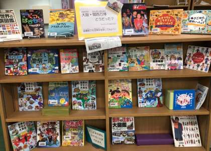 2学年ずつ訪れた万博への遠足をすべて終え、学校図書館に世界の国々のコーナーを設けてくださいました。
