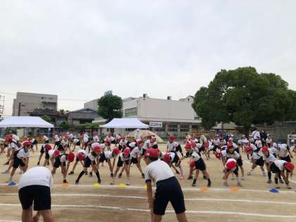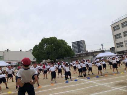 「思い出にのこる運動会 〜150周年を盛り上げよう!〜」を開催しました。たくさんのご観覧、ありがとうございました。まずは、準備体操から。