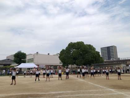 前半は体全体を大きく使った表現、後半はキラキラ輝くポンポンを使った演技です。一人ひとりがお星さまのように輝いています。