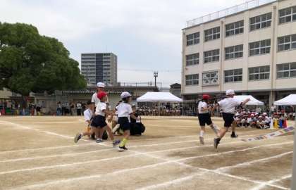 跳び箱を飛び越え、輪をくぐり、そして大激走です!