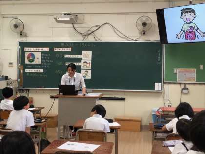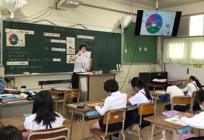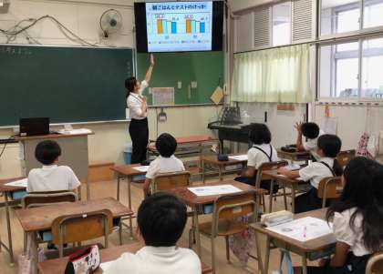 区内の小学校から栄養教諭の先生に来ていただき、3年生で栄養指導を行いました。