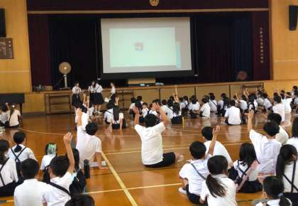 水曜日の児童集会は「キャラクタークイズ」でした。