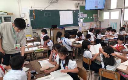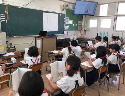 2年生の国語科では、動物園のゾウについて説明されているかんばんと、ガイドブックの違いについて考えています。