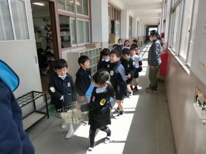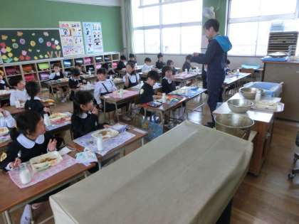 最後の後片づけは、給食当番が力を合わせてがんばっていました。