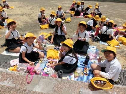 お昼は天気がとても良かったので、館内ではなく建物の外でお弁当です。