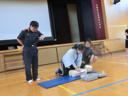 放課後に大正消防署から講師に来ていただき、普通救命の講習会が実施されました。