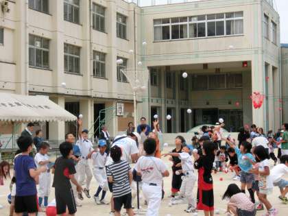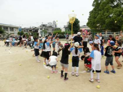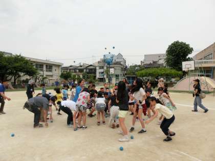 玉入れも4チームに分かれ、熱気がみなぎっています。