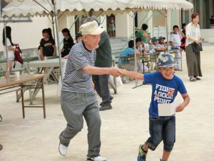 途中で大正区長が来校され、借り物競争に特別参加していただきました。