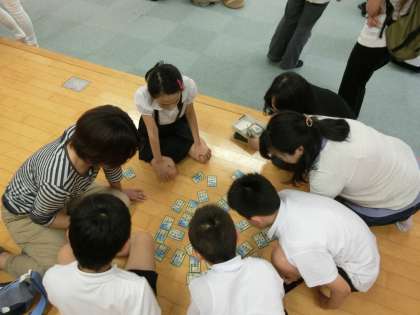 5年生は多目的室で都道府県・国旗かるた。唯一スポーツではない取り組みでした。