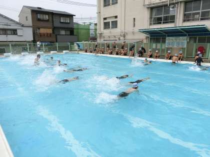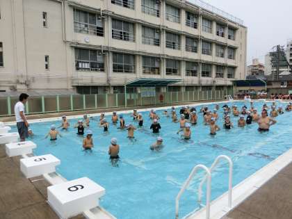 今シーズンのトップを切って、6年生のプール学習がスタートしました。