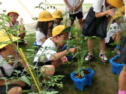 約1ヶ月前に植えた、ミニトマトの苗の成長を観察しました。