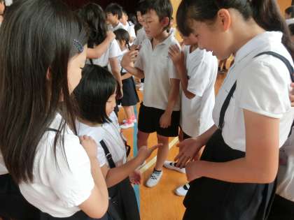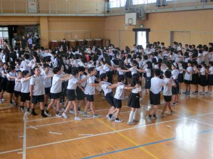 今日の児童集会は、講堂でじゃんけん列車が行なわれました。