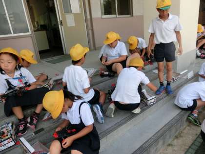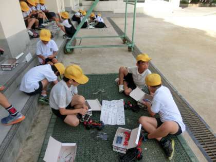 4年生が光電池モーターカーを作成しています。