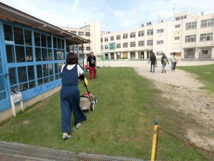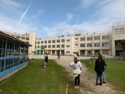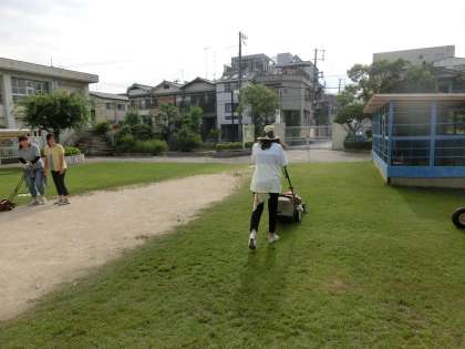 夕方4時からPTAの方による芝刈りが行なわれました。