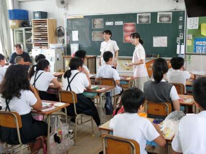 3組だけ3時間目に授業が行なわれたので、先生が二人もついています。
