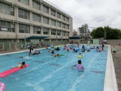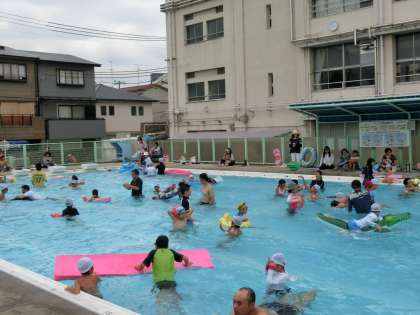 毎年恒例の親子プールが行なわれました。天候もあまり日差しが強くなく、大人にとっても良いプール日和でした。