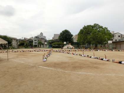 雨が降ったりやんだりの天気が続く中、子どもたちは元気に運動会の練習に頑張っています。