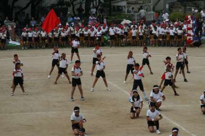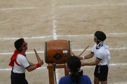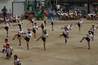 リーダーの大きな掛け声に合わせて、気合の入った応援合戦を繰り広げていました。