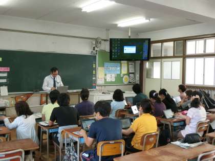 基本的なソフトを授業でどのように活用するか、業者から講師に来ていただき指導を受けました。