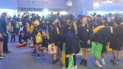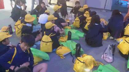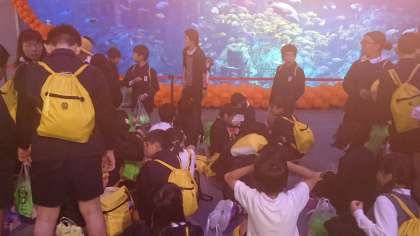 12:40 鳥羽水族館見学も終わりに近づき沢山のお土産を持って、子どもたちは集合場所に集まってきます。