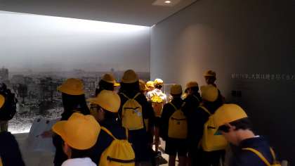 ピース大阪では戦時下の大阪の暮らしや大阪大空襲を興味深く見学していました。