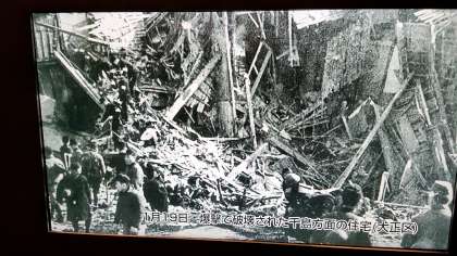 特に爆撃で破壊された大正区の写真に見入っていました。