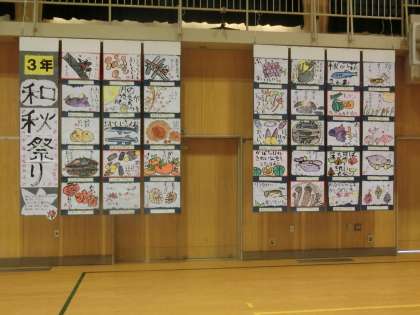 3年生は「和秋祭り」子どもたちそれぞれが思いついた秋の代表を描いています。個性豊かな絵手紙になっています。