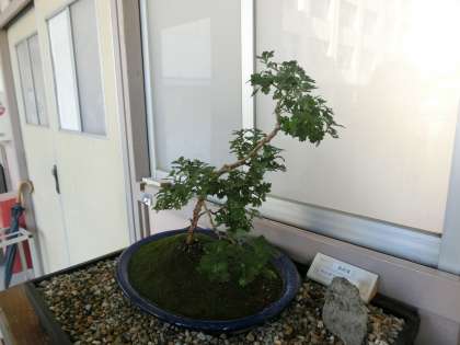 土曜授業に向けてグリーンボランティアの方が校長室前に盆栽を飾ってくださいました。