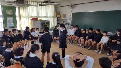 1・6年生は教室で「ストップゲーム」と「何でもバスケット」。