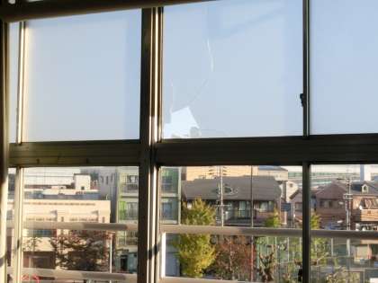 破損したガラスについては十分な安全確保を行っており、教育活動には影響がありません。