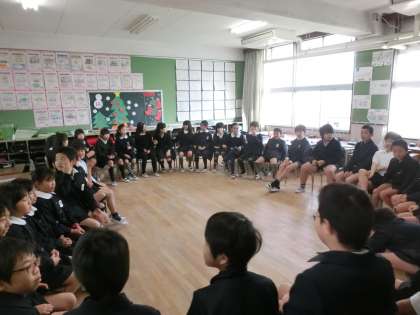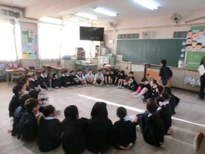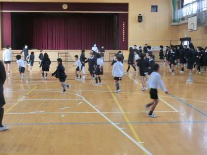 朝から異学年交流で、低学年の子どもたちが元気いっぱいです。